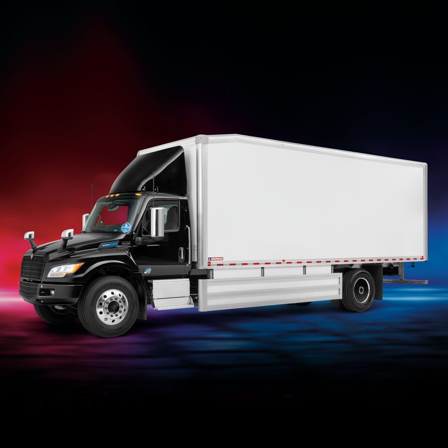 The NEO proof-of-concept body (POC), shown on Navistar’s International® eMV Series chassis, represents the next step of Morgan’s product evolution to achieve extended range, improved aerodynamics, and a lighter-weight dry-freight body. It comes on the heels of last year’s first-phase concept body that introduced lighter-weight materials and situational awareness elements, many of which are now available.